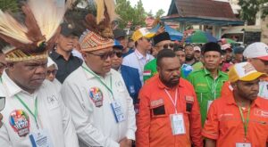 Pantauan media ini, Pasangan Hero arak arakan oleh ribuan masa pendukung, simpatisan serta 13 partai politik pendukung memenuhi bahu jalan serta di iringi dengan tarian adat Papua serta tarian dari suku Nusantara dengan pakaian adat masing masing. (Dhy)